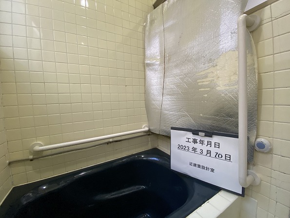 ★浴室の手摺取付け施工状況 (※縦手摺は壁との距離がある握りやすいタイプを選定しました。)